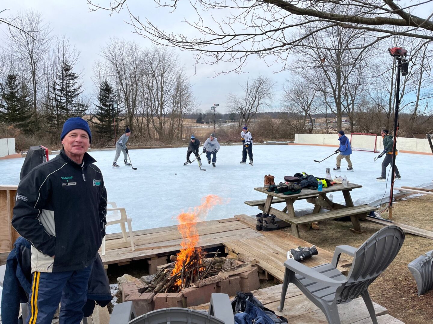 For those of us who played hockey with Tim, we saw that smile a lot as he stole a puck from us or simply flew right by us in one of our hundreds of NHL (Nittany Hockey League) adult hockey games at Greenberg Ice Pavilion or Pegula Ice Arena. He did the same on his outdoor Holdcroft Ice Rink (complete with boards, lights, and an amazing firepit) in his Ramblewood II neighborhood. I always looked forward to Tim’s email that it was rink-building time and would summon his friends to pitch in, which everyone gladly did. In more recent years my own boys and their friends loved joining us for the outdoor hockey games just down road from our State College home.