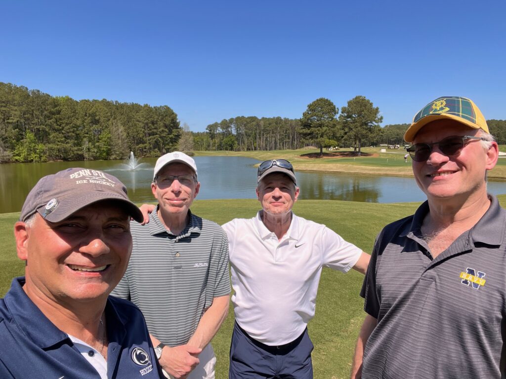 Tim would travel almost annually in March to Hilton Head with longtime friends Bob Beaury and Kevin Michael, and I sometimes accompanied them long before I moved here. Lately, that trio would come down and join me and other Penn State friends for a week of golf. I certainly had hoped it would last for many years into our retirement. Bob and Kevin were two of Tim’s closest friends and shared a passion for hockey, golf and possibly an adult beverage or two.