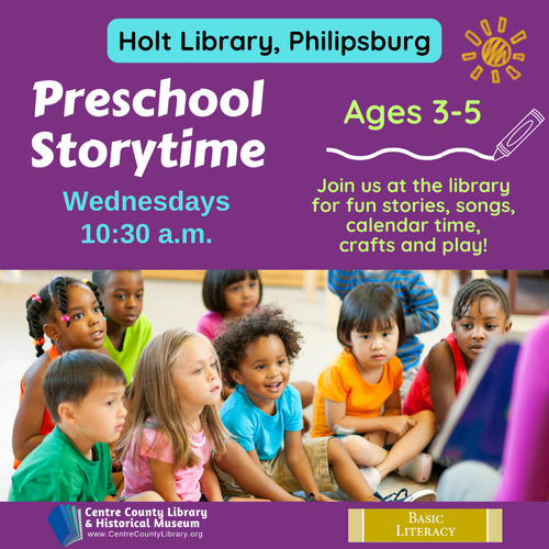 Join us at the library for fun stories, songs, calendar time, crafts and play! For kids ages 3-5. There is no need to register.