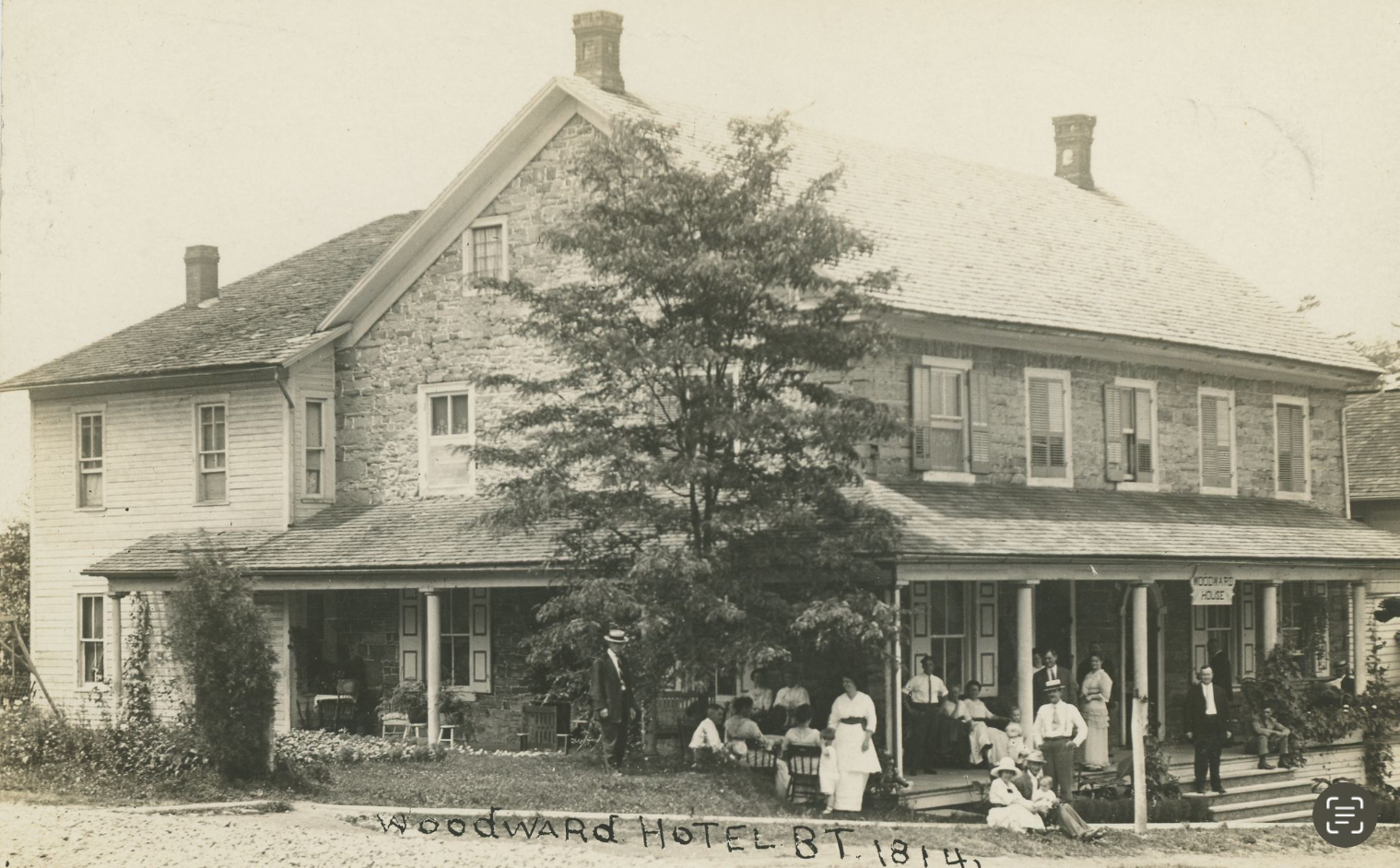 The historic hostelry has always been vital to the Woodward community, even before the burg was called Woodward. The Motz family (also spelled Moatz) first settled the area, which became known as Motz’s Mill, Motz’s Bank, or simply Motz’s. John Motz (1758-1802) had immigrated from Germany and built a gristmill here. He and his wife, Mary, raised a large family including John Motz Jr. (1792-1849). After John Motz Sr. passed away in 1802, his widow and John Jr. built the stone tavern in 1814, replacing an earlier frame (or log) tavern. The family had been in the tavern business for some time before 1814 and had tavern licenses dating back to 1801.
